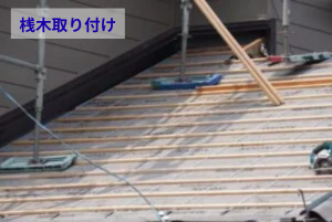 屋根の葺き替えは、瓦を並べるだけでなく、桟木などの下地作業が重要です。