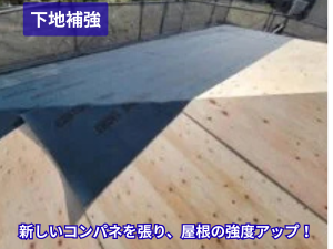 既存の下地板(野地板)は、長年の使用で一部に劣化やたわみが確認されました。