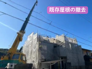 廃材を効率よく下ろすためにクレーンを活用し、安全かつスピーディに作業を進めました。