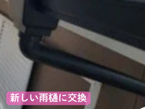 雨樋は紫外線で硬化し、一部が外れていたため、雨水が直接地面や外壁に流れ落ちてしまっていました。