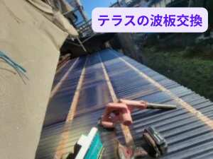 また、テラスの波板も劣化しており、風で飛ばされる危険性がありました。