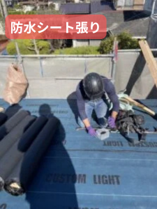 新しい防水シートを屋根全体に敷設。二次防水として雨水の侵入をしっかりガードしてくれる大切な工程です。