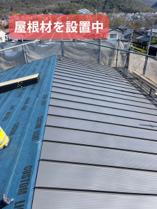 屋根材設置中