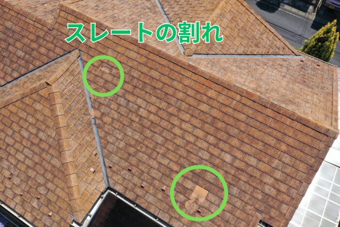 スレートの割れを複数確認