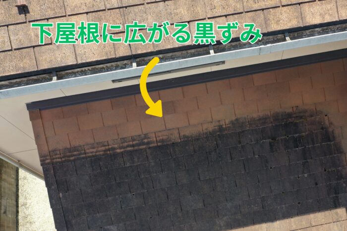 下屋根に見られた黒ずみ